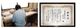 「久保金属を知ってもらうことは大切」。応接室の壁に掛かる数々の表彰状が技術力の高さを物語る