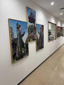 米沢工場では廊下に並ぶアートの一つが窓で、中の職場が見える